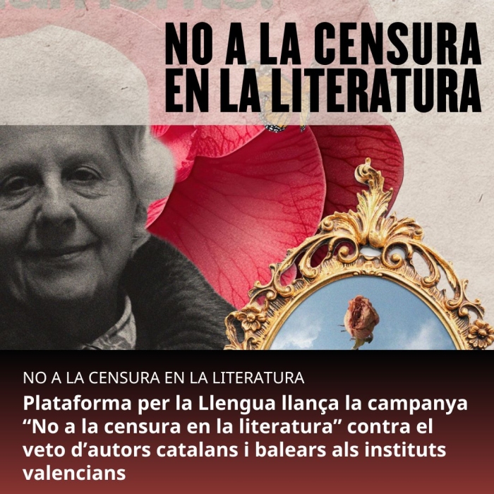 Era prepausa hèta publica eth passat 23 de hereuèr pera Conselheria d’Educacion dera Generalitat Valenciana d’eliminar es autors non valencians dera matèria de Valencian a Bachillerat provocarà qu’es estudiants deth País Valencian non poguen estudiar figures coma Ramon Llull, Jacint Verdaguer, Àngel Guimerà, Mercè Rodoreda, Josep Pla o Salvador Espriu, entre fòrça auti. En aguest sens, des dera Hèira Litterarum sostiem ara campanha “No a la censura en la literatura” qu’a lançat Plataforma per la Llengua del País Valencià contra aguesta decision, e se some ath manifèst de supòrt signat per mès de 220 departaments de valencià d’instituts valencians. Podetz signar eth manifèst de Plataforma per la Llengua en aguest ligam: https://www.plataforma-llengua.cat/non-a-la-censura/